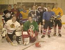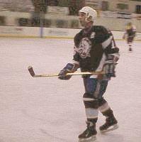 It is back, and so are Mike Watkinson and Brad Sudal, a couple of bankers. I appeal to their white-collar sensibility and I lunge into the fray again. Someone has to have the puck, I figure, and it may as well be me. I chop at the ice like a poorly, trained prep-chef, trying to get past a tangle of sticks to the puck. Somebody with a brown stick (liquor store owner, Joe Tuesch, I believe) steals the puck from me and takes it to the far blue line. I follow him right up until his slap shot.