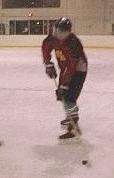 It's like the Running of the Bulls in here. I'm tangled in a pile of legs, arms and sticks and I am a little confused as to which ones are mine. I actually get near the puck (ready... for a... GOAL!) and it disappears. In a second it's clear on the other side of the stupid rink, by John Suchwalke's net. I'm pretty beat by now, and rather than skate way the heck over there, I hang out in our face-off circle, because the darn thing will be right back here anyway.