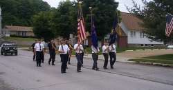 I rode into McGregor, Iowa on Sunday, and incidentally, I felt awed by the spirit of the Ringling brothers, who grew up here, and gave penny shows before they met up with Bailey and Barnum and all those clowns. There was an event going on in Triangle Park - a Memorial Day craft show - and I wandered over to the Beer and Brats Booth, hosted by the local American Legion Post (number 267). Cheri Leachman, the post's chaplain, greeted me. She, the other Legion members and I hit it off well, and I asked if I could be in their parade the next day, and they said "sure" and then I jumped right into the action and served brats for a while, and helped raise money for the Legion's and AmVet's local charities. It was one of the more enjoyable times of this trip - I really felt like I was among friends, and that is hard to achieve when you're in a different town every day, and you have one of those introverted personalities like mine.