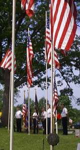 The parade ended just north of Triangle Park and the gas station, and everyone walked to the boat ramp for a small service, wreath laying and 18-gun salute before driving up the dirt road to the Pleasant Grove Cemetery on the ridge for a more formal service.