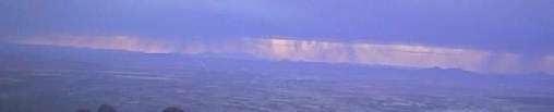 I have a gorgeous view all around me. The countryside is just incredibly brilliant in its simple, flat landscape - I can see for miles and miles, and it seems so quiet. There are large plots of farmland all around, an RV park, a highway, a train passing by, and several mountains which seem to sprout up from the horizontal plane, like someone just placed them there. And the weather is putting on a beautiful show for me, with a major storm to the northeast. I sit down and have some dinner.