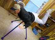 The LANDING - Once again, we go outside under a beautiful, clear sky to the jumping platform. Sherman shows us how to do a "Parachute Landing Fall" where we keep our hands and knees together, absorb the impact rather than try to prevent it, and roll to one side, like we're fainting. This is incredibly easy and I blow it each time. Leasure and Black glide right through it.