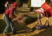 When things get slow, the workers crowd around the balers. When they see me coming with a customer, they jump in to help, hoping I will share the tip, I guess. One guy - Tip Crasher, I call him - actually steals my collar! As soon as the tree hits the ground, he ties up the netting, picks up the tree and follows the couple to the parking lot. Later, he gives me a buck. "They tipped us," he says. "Us?" I think.