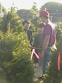 Thursday night: Johnson hands me a fistful of price tags and a marker pen. "You are empowered!" he says with that grin, and I get a pricing sheet and head off to price trees. This also gives me the power to sell trees and load them on people's cars - "where the money is." Well, tonight I get a big, $5 tip from a man and his wife buying a six-foot Douglas Fir, and I get the fever. I make seven bucks in tips tonight.