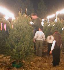 Working with customers is actually fun, because you never know if they will tip or not - it's like having a lottery ticket in your hand; sometimes you win, sometimes you break even, but here, you never lose. It is fun also, because you get to joke with the customer and share Christmas stories. But let me tell you, some people take this stuff seriously, and they spend so much time looking for the perfect tree, you wonder if they know these things are not artificial. It must be a Christmas tradition with some families to see how many trees they can fondle in one night and to see how many times they can get the sorry Tree Lot Guy to haul huge, freaking trees clear through this forest until his faithful legs finally give out, and in a dizzy, yet terribly valiant display of servitude, he drops to the hay, begging their holiday mercy.