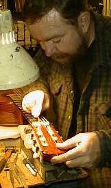 Rather than be rattled by impromptu visits and demands on his time, this late-forties Canadian-American thrives on the challenges they present. His soft, pleasant voice and gentle delivery contrast with his swift pace as he scurries from room to room in his shop repairing guitars. Though this is not the life he originally set his dreams upon, he seems more than pleased to be living it.