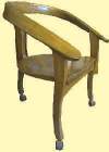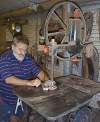 He now makes "the rockinest rocker in the world" as one of his customers called it, out of woods milled within sight of his shop and house. The chair behaves just like a rocker, but the base sits fixed on the floor. A series of swing arms and bearings make the chair rock on its base. With an old design, it is appropriate that he uses old tools, and his shop, just west of the Amana colonies, in eastern Iowa, is practically a power tool museum. Nearly buried behind piles of beautiful walnut lumber are a 1934 stroke sander table, a 1920 mortise machine and - his favorite - a 1914 bandsaw. They all work better than what he could get new, he says.