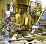"The floor has never seen a broom," he says. "Not so long as I've been here." And that would be, oh, two decades. Rubbish is kept to a minimum, but that is his only redemption. Wood is scattered everywhere, tools are placed wherever seemed to be convenient at the moment, bench tools double as tables for clutter, floors are merely narrow pathways between large piles of wood - old wood, new wood, large wood, small wood. More clutter clings to the walls, as if it crawled up there, trying to escape. Customers have stormed out of this dust factory, frightened insurance inspectors have stumbled away, their trembling hands tearing up policies, Fettkether slamming the door behind each of them, cursing their uptight souls.