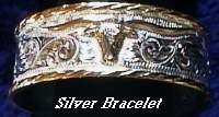 He sought a new way to earn a living, and he sought a new way to work with metals and with his hands. He tried making spurs for a while (he has a collection of over 1,000 bits) but he just couldn't enter that narrow market. Two friends; Boyd and Harlan Ingman, made silver and copper jewelry, including bracelets, earrings and rodeo prize belt buckles, and they invited Howard to take up the trade.